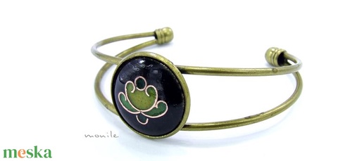 Virágos fekete-zöld tűzzománc karperec