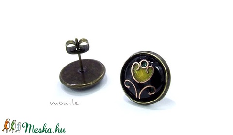 Virágos fekete-zöld tűzzománc bedugós fülbevaló