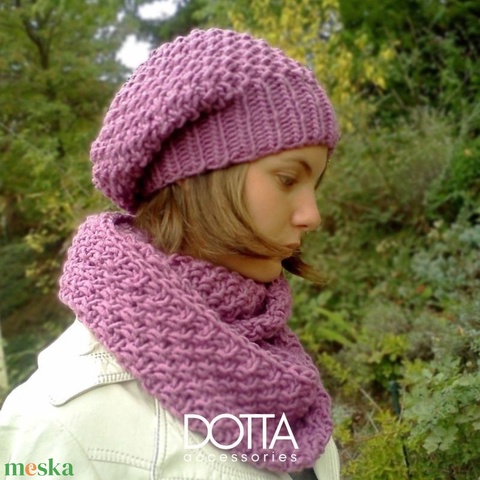 Ciklámen sapka - slouchy lgós fazon - meleg gyapjús téli fonalból kötve