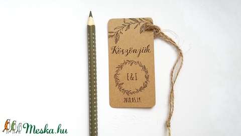 Igényes köszönetkártya, ajándékkísérő lyukasztva szalaggal kötve