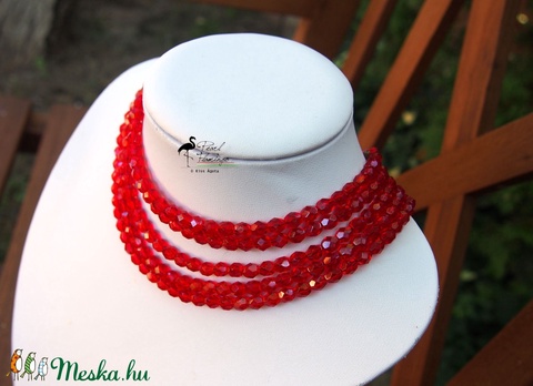 4 soros piros üveg gyöngy kaláris
