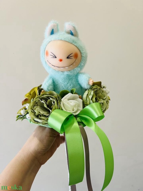 Az idei év egyik legtrendibb és legszenzációsabb ballagási csokra, amelyben a népszerű Labubu plüss figura találkozik a friss, mentás-kékeszöld színvilággal. Egy igazán különleges ajándék, ami garantáltan kitűnik a tömegből!