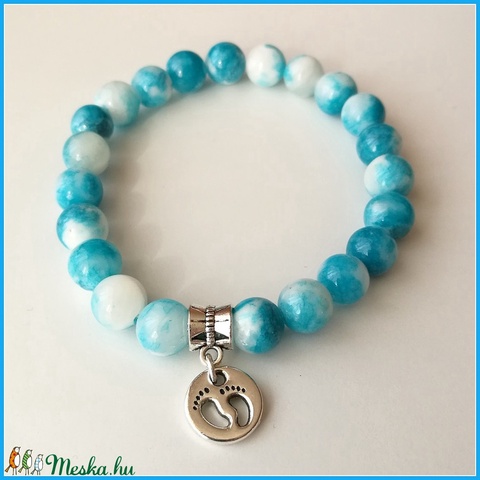 Babaváró karkötő, kék-fehér-zebra jáde, 8mm-es, magas minőségű természetes féldrágakövekből