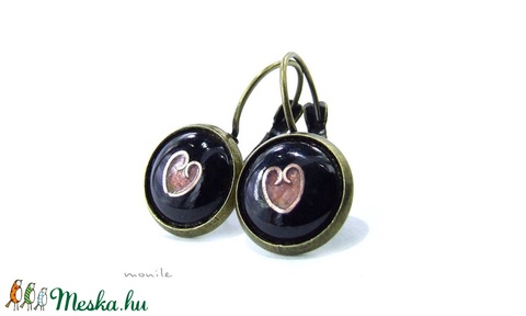 Tűzzománc fülbevaló - szíves fekete-rózsaszín