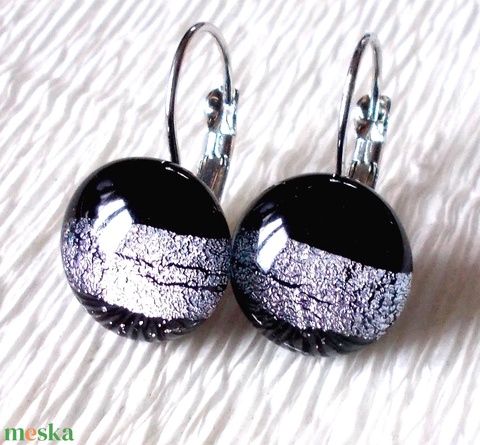 Fekete-ezüst szalagos kapcsos fülbevaló, ajándék nőknek névnapra, születésnapra.