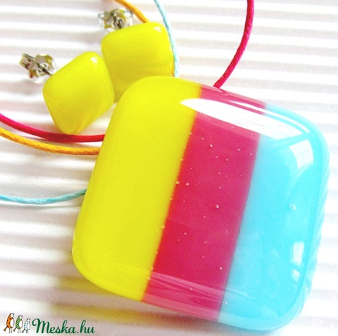 Tavasz tündér mosolya üveg medál és fülbevaló, üvegékszer szett