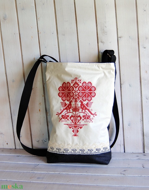 Victoria hímzett táska, piros madaras táska