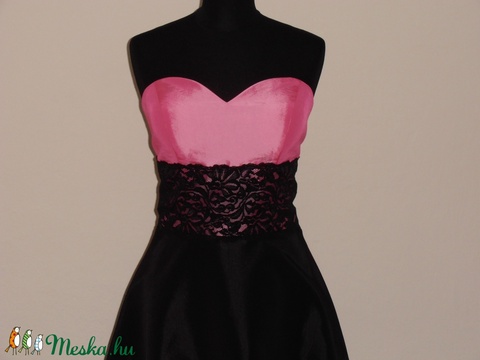 Rózsaszín-fekete csipkés alkalmiruha szalagavatóra nyakkendővel