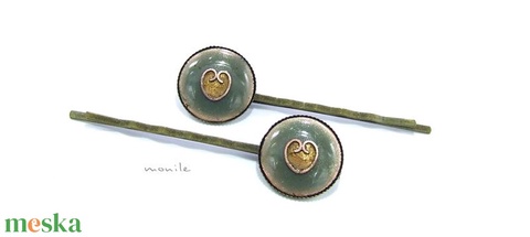 Szíves pisztáciazöld tűzzománc hajcsat