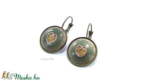 Szíves pisztáciazöld tűzzománc fülbevaló