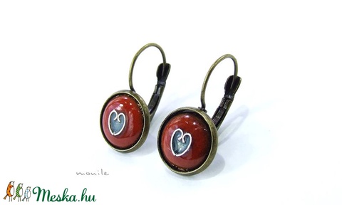 Tűzzománc fülbevaló - szíves narancs-türkiz