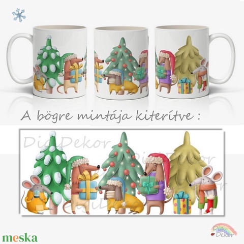 Kutyás-egeres-fenyőfás karácsonyi bögre mókás rajzokkal. 3 dl-es kerámia bögre nem csak gyerekeknek.