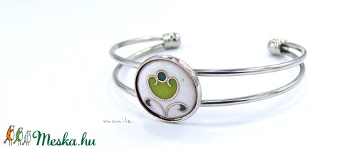 Virágos fehér-zöld tűzzománc karperec