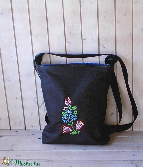 Hímzett virágos folk válltáska, tarisznya