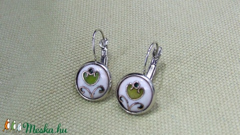 Virágos fehér-zöld tűzzománc fülbevaló (kicsi)