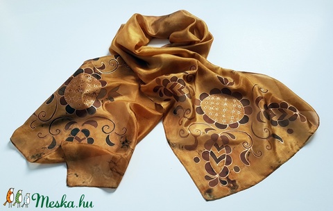 Kézzel festett SELYEMSÁL, magyar népművészet, erdélyi, barna háttér