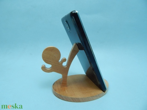 Fa asztali telefontartó karatés figurával