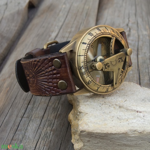 Férfi karóra, Napóra és iránytű karóra, Antik bronz napóra, A természet szerelmeseinek!