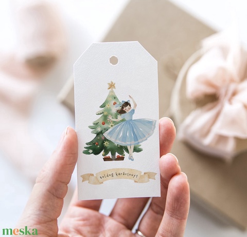 Karácsonyi ajándékkísérő, Diótörő ajándékátadó címke szett 5 db