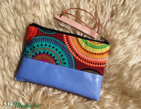 Azúrkék valódi bőrrel- desigual neszeszer/tolltartó, rojtos