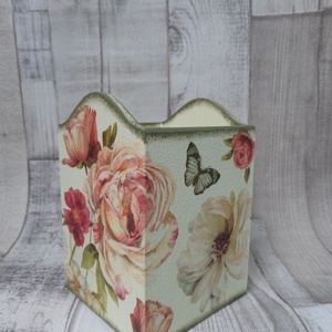- Anyaga: fa alap, alapozófesték, akrilfesték, szalvéta, dekupázsragasztó, lakk
