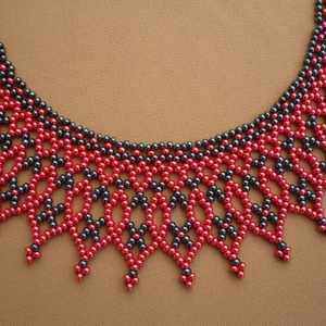hematit fekete-bordó szívecskés gyöngynyaklánc, gyöngy nyaklánc, gyöngygallér, gyöngy ékszer