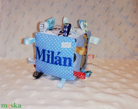 - Anyaga: pamutvászon, grosgain szalagok, cérna, polyester töltelék, natúr fa karika, belső csörgő