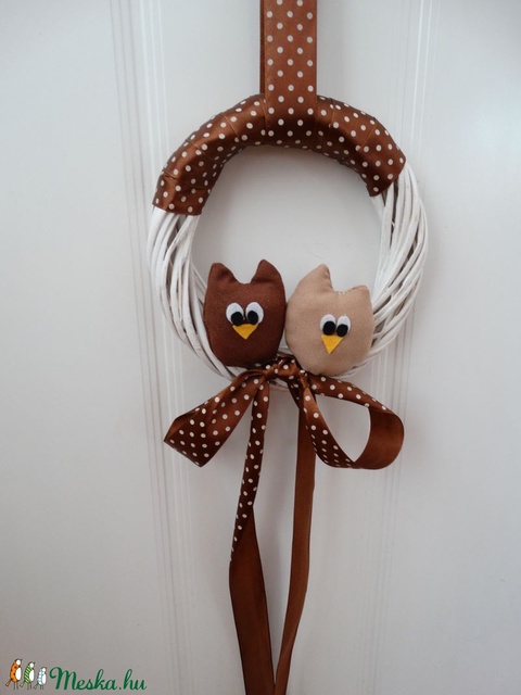 Baglyos ajtódísz - Őszi Baglyos koszorú - Baglyos kopogtató - Ajtódísz baglyokkal - Pöttyös baglyos - Baglyos falidísz