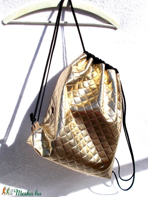 metál fényű műbőr, zsinór, cippzár, pamut vászon