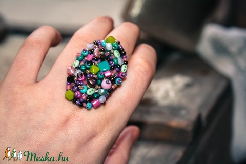 Nagyon színes, különleges, állítható méretű gyűrű!
