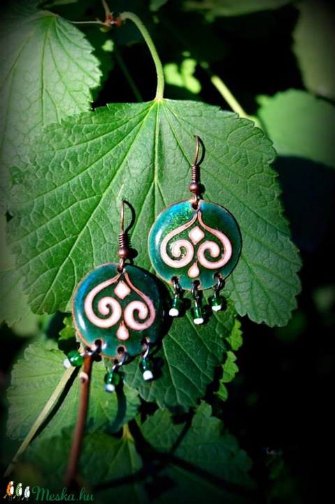 Zöld-fehér tűzzománc fülbevaló