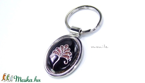 Fekete-rózsaszín tűzzománc kulcstartó