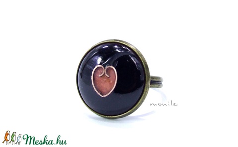 Szíves fekete-rózsaszín tűzzománc gyűrű