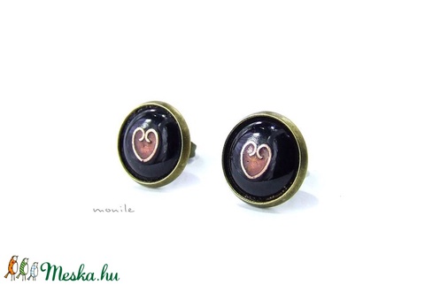 Bedugós tűzzománc fülbevaló - szíves fekete-rózsaszín