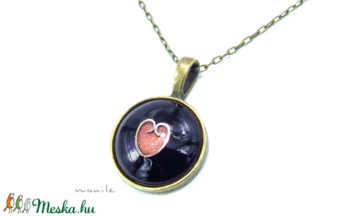 Szíves fekete-rózsaszín tűzzománc nyaklánc