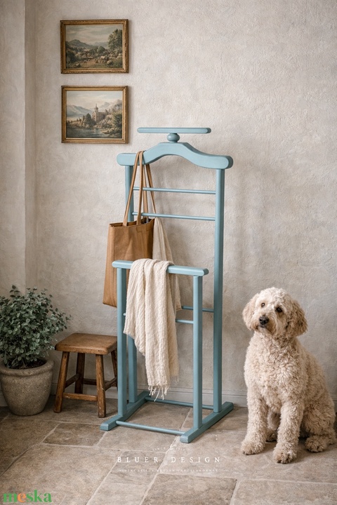 Farmhouse hangulatú inas vintage fa szobainas ruhatartó butler