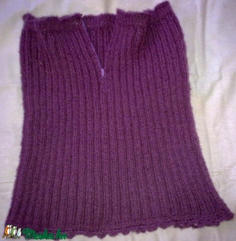 Nagyon jó meleg, pihe-puha kézzel kötött szoknya lila olasz import akril fonalból. Hossza 50 cm. 38-40-es méret, az első képen hátul cipzáros, derekába gumit fűztem. Az utolsó képen bebújós változata látható. Alját horgolt csipke díszíti.