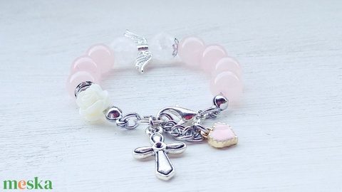 Keresztelő ékszer - rózsakvarc, hegyikristály