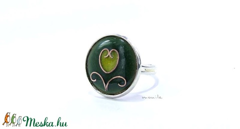 Tulipános zöld-sárga tűzzománc gyűrű