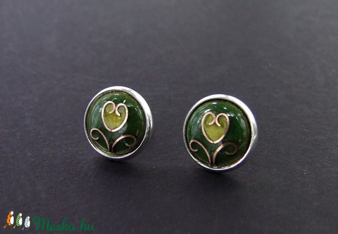 Bedugós tűzzománc fülbevaló - tulipános zöld-sárga