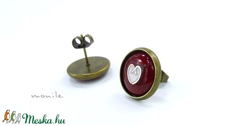 Bedugós tűzzománc fülbevaló - szíves bordó-fehér