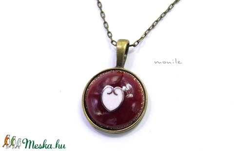 Szíves bordó-fehér tűzzománc nyaklánc
