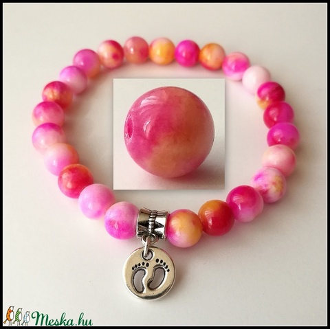 Babaváró karkötő, méz-barack-zebra jáde, 8mm-es, magas minőségű természetes féldrágakövekből
