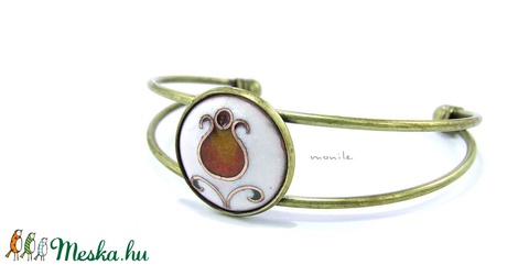 Virágos fehér-narancs tűzzománc karperec