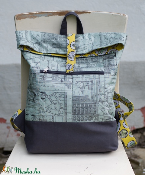 AKCIÓ!!! Modern hátizsák - Visszahajtott tetejű (szürkéskék-sárga)