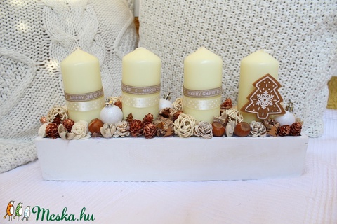 Beige-bronz,adventi doboz, karácsonyi dekoráció, asztaldísz, adventi koszorú