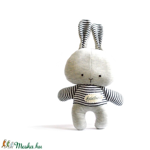 Névre szóló nyúl nyuszi játék játékfigura állatfigura plüss szürke kék fehér csíkos
