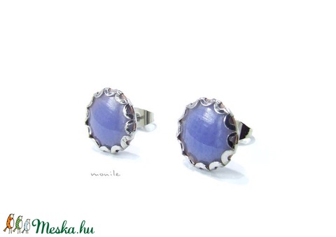 Levendulakék tűzzománc bedugós fülbevaló hullámos széllel