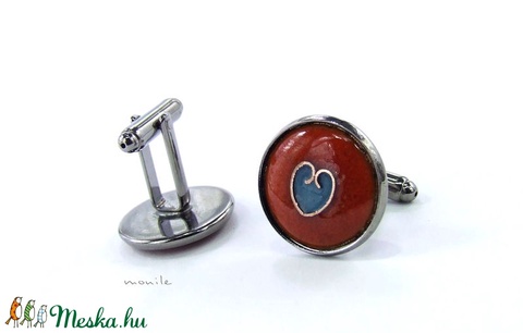 Mandzsettagomb - szíves narancs-türkiz tűzzománc