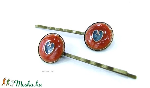 Szíves narancs-türkiz tűzzománc hajcsat